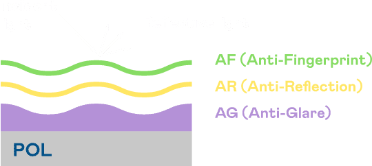 A.R.T.赏金国际光电发展出独家的表面处理跟多层镀膜技术,,,,让外部光线照射到显示器表面时所产生的反射光大幅降低。。。。 |