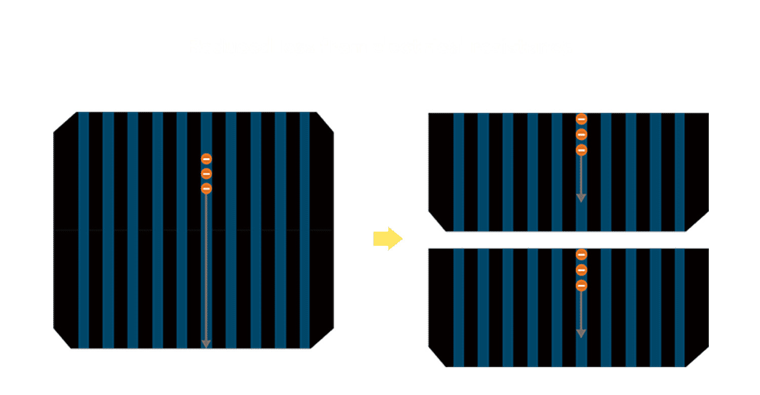 - 结合半切电池,,,,降低遮阴影响、、、、提升模组抗隐裂能力、、并减少电阻损耗,,,,进一步提升模组发电效能。。。